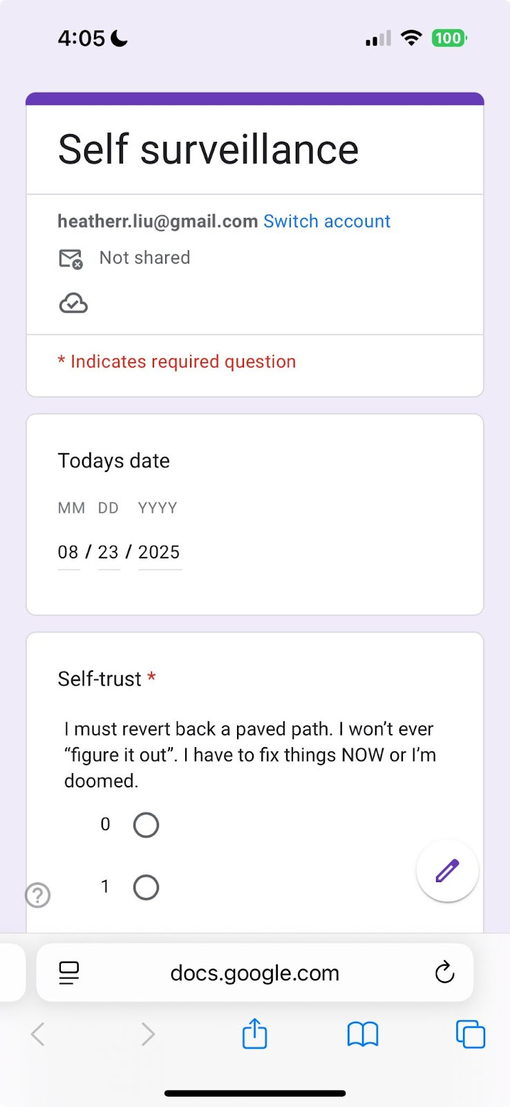 A year ago, I started logging my level of self-trust on a daily basis, in addition to 3 other core emotions.
