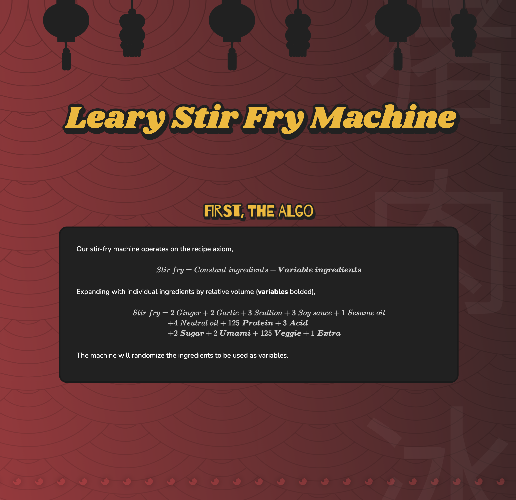 Leary Stir Fry Machine: Cooking with Flavor Variables and Intentional Chaos
